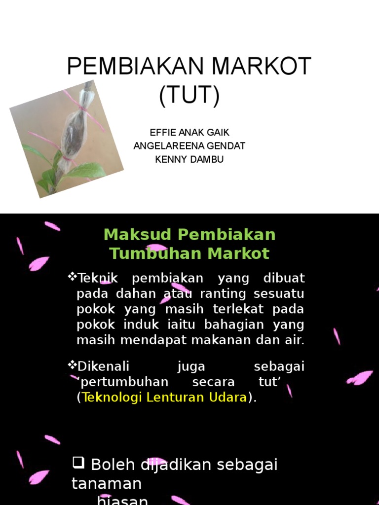 Buat dua kelaran mengelilingi ranting atau dahan yang mana jarak di antara. Semua memberikan cara yang mereka rasa terbaik berdasarkan pengalaman atau petua tradisi masing-masing. PEMBIAKAN SECARA TUT MARKOT Terdapat dua cara pembiakkan secara tut Markot iaitu.